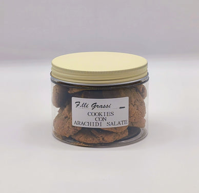I nostri cookies con arachidi salate sono un'esperienza di gusto unica: la dolcezza dell'impasto incontra la croccantezza e la sapidità delle arachidi salate, creando un contrasto irresistibile che conquista al primo morso. Preparati artigianalmente nel nostro laboratorio con ingredienti selezionati.